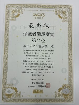 「保護者満足度賞」2024年度1位!2025年度2位になりました!